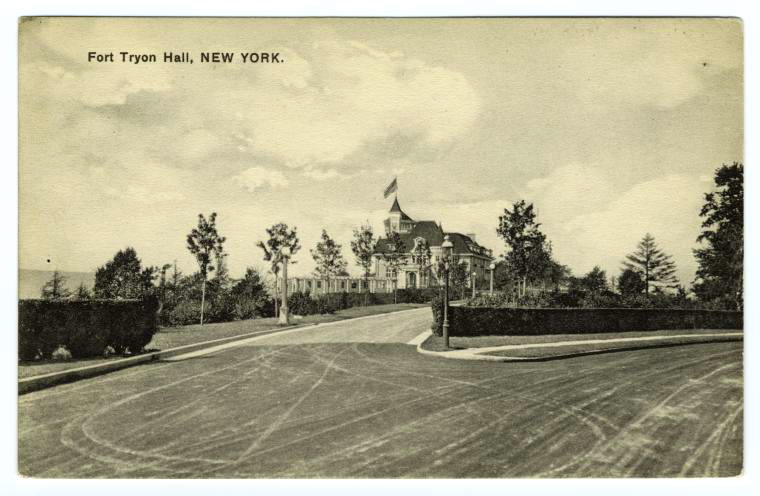 Like the postcard says, it was called Fort Tryon Hall. The “Hall” cost was $2,000,000 and stood on Manhattan’s highest point, 250 feet above sea level, with 20-mile views of the Hudson Valley. His 25-acre  estate encompassed formal gardens, a 126-foot-long bathhouse for the  75-foot indoor marble swimming pool, and a yacht landing on the Hudson at Dyckman Street. There he had his 232-foot yacht, Vanadis.